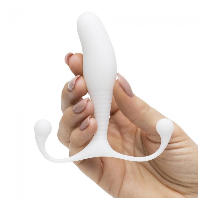 The MGX Trident is the new interpretation of the Aneros MGX Classic, the model that launched the entire prostate stimulator market. The MGX Trident is our most balanced model, based on Aneros' original first generation classic model, the Aneros MGX Trident features a smaller .7 inch wide head for easier insertion up to 4 inches, a gently tapered body for smooth action and a ribbed stem for enhanced anal stimulation with more sensations in the anal canal. The angled head massages the prostate while the Trident arms for better movement with a contoured MAMA body for lateral and rotational movement. The P-Tab or Perineum tab provides an external prostate massage by pressing against the perineum, and acts as a pivot point to drive the massaging action of the Aneros inside the rectum. A man experiences both an internal and external prostate massage simultaneously. The K-Tab or the Kundalini tab is an accupressure point between the buttocks that provides pleasurable sensations. The continuous stimulation of the prostate and perineum leads to stronger orgasms and possibly the Super-O as well. The MGX Trident is easy to use and fulfilling for both the beginner and the expert, with progressively rewarding exercises and experiences.