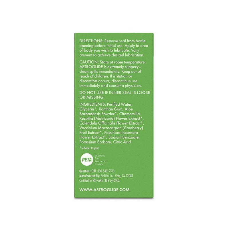 Astroglide Natural Personal Lubricant does not contain fragrances, colorings or other ingredients that are common irritants. However, any topical product can cause irritation. If you feel that you may be sensitive to one of the ingredients, test the personal lubricant on a small patch of skin. If irritation occurs, discontinue use.