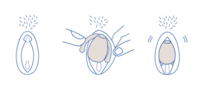 The device is placed at the front of the woman's vagina and flexible “arms” tuck under the labia to hold the vibrator in place.