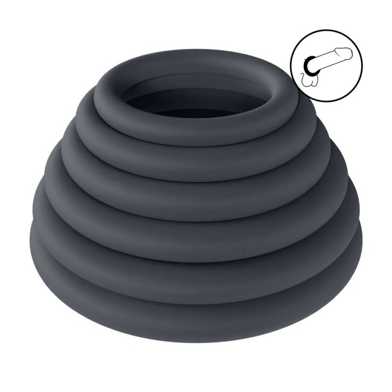 Step up your game with this essential trio from the LEVELZ collection. This non-vibrating set includes three body-safe silicone cock rings in XS, small, medium, large, extra large, XXL and perfect for shaft, cock & balls, or stacked wear. Each silicone cock ring offers a different fit and feel, letting you customise your experience. Packaged in a sleek, merchandisable clamshell for easy display and storage.