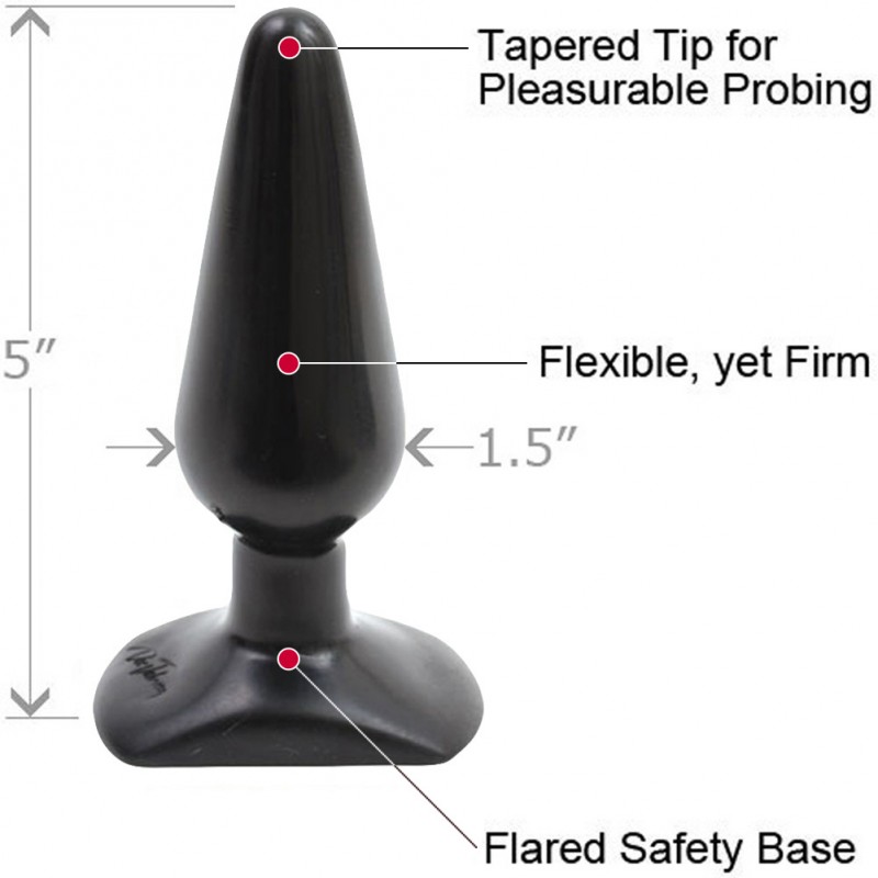 Classically-styled with a nice thick shape designed for average stretch and sensation, Doc Johnson Classic Butt Plug Medium offers up a smooth taper with a big sturdy base designed for a precision grip. This sex toy is designed for smooth entry and an exciting stretch, Classic's thick swell naturally targets anal sweet spots inside and out. Nice and wide at the base, the triangular shape protects against too-deep penetration. This Classic anal toy cleans easily using warm soapy water or a good toy care fluid/foam. Compatible with both water- and silicone-based lubes.
