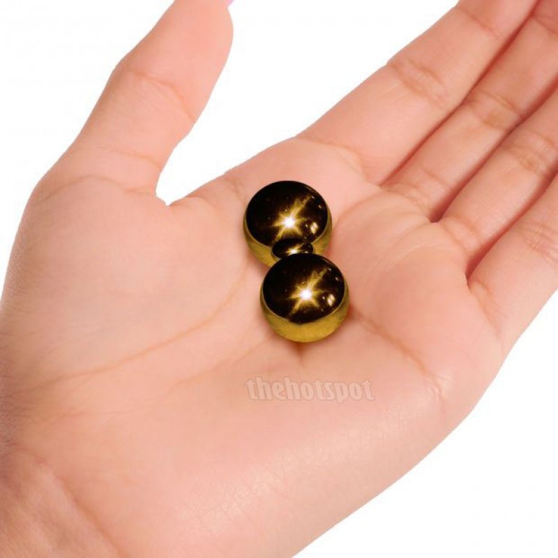 The Fetish Fantasy Gold - Ben-Wa Balls are cast in high-quality metal and hand-polished to a glimmering golden sheen. The hygienic finish is sleek, nonporous, and easy to clean. The balls are simple to use, totally discreet, and can be worn anywhere, though as they are the classic string-free design and on the smaller side, these are recommended for somewhat more advanced users for the best experience.