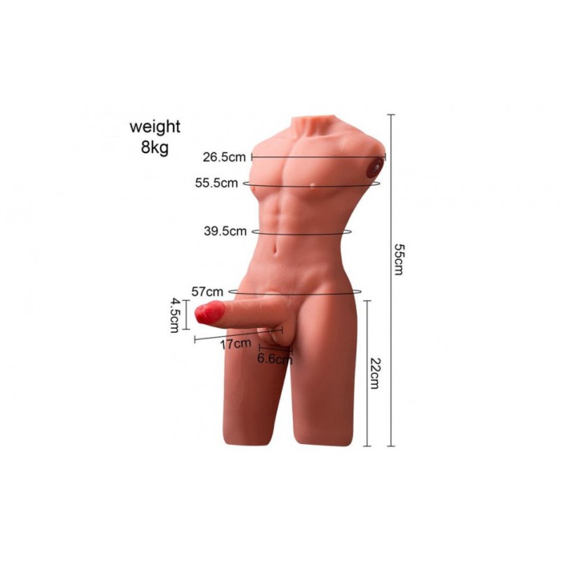 Take your solo or partnered sessions to the next level with Jason, a sculpted male torso sex doll built from ultra-soft, skin-like TPR for an incredibly lifelike feel. From the solid abs and defined torso down to his thrusting 17cm shaft, and even his anal canal, full of ridges and texture - every inch is designed for immersive pleasure. Compact but substantial at 8kg, Jason stays steady as you ride or let him pound you, bringing intense stimulation right where it matters most.
