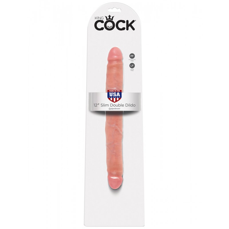 Fulfill your mightiest fantasies with this sculpted realistic double dong! The King 12โ Slim Double Dildo comes complete with lifelike veins, ridges, and length and girth enough to satisfy your deepest desires. Plus itโs dual-ended, so this flexible dong can double up on you โ or you and a friend!