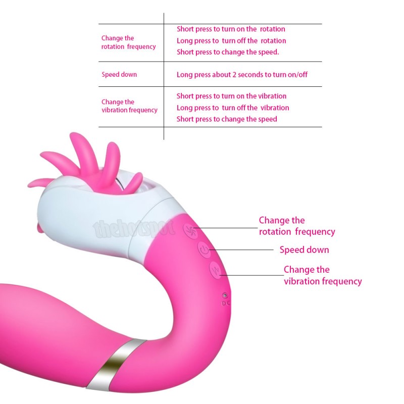 - 10 smooth, spinning silicone tongues to lick your clit into a frenzy of arousal
