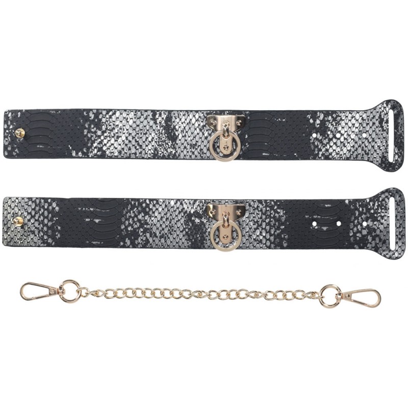 The Florence Collection Handcuffs by Ouch! are comfortable but incredibly secure. Made with high quality bonded leather, the hardware features an iridescent finish, giving it a high fashion look that will please more than the eyes. All Shots toys come with a 1-year warranty.