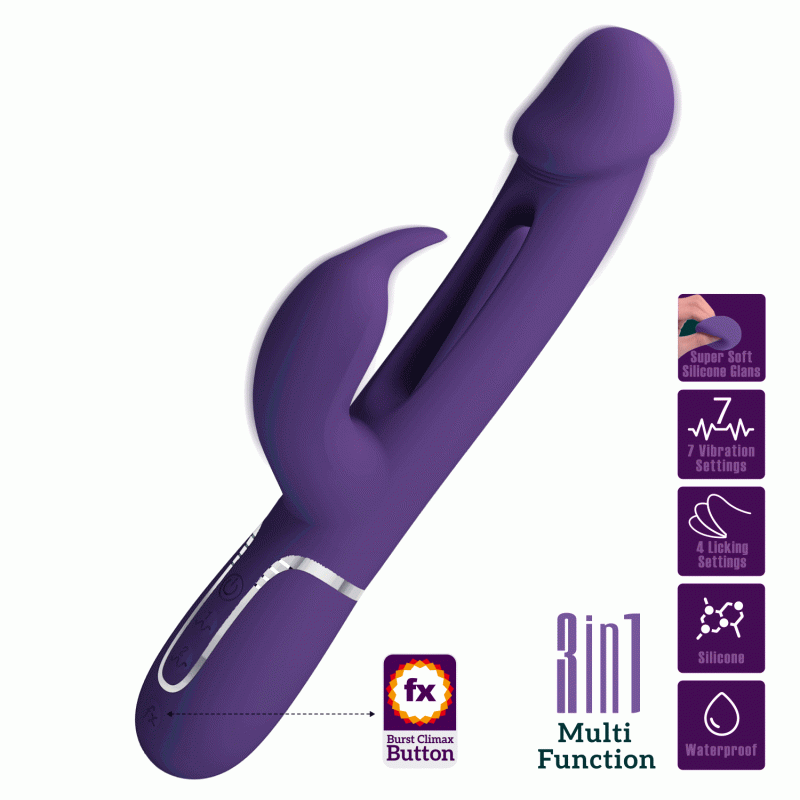 This rechargeable rabbit vibrator is blessed with two motors that you can control to give you full pleasure combinations that will leave you blissfully breathless. The powerful rabbit adorning the clitoral arm tickle and tease your sensitive hotspot like nothing else. Added swinging tongue in the middle of the vibrator shaft provides you with extra sensation during the play and there's even a special climax button to boost all the motors to their most powerful settings for a truly toe-curling ride. Top up your vibrator's power with the magnetic charging cable, which snaps into place on its own for the ultimate user-friendly experience.