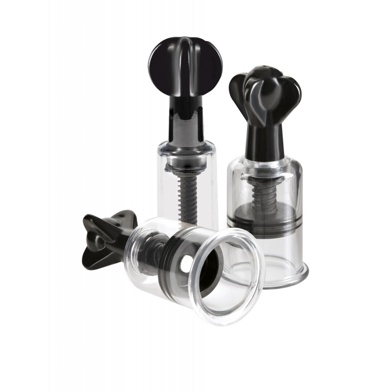 Intensely stimulating sensitive bits of flesh via sexy suction targeted with incredible precision, Fetish Fantasy's Super Suckers Trio contains 3 sucker pumps ideal for advanced nipple play and beyond.