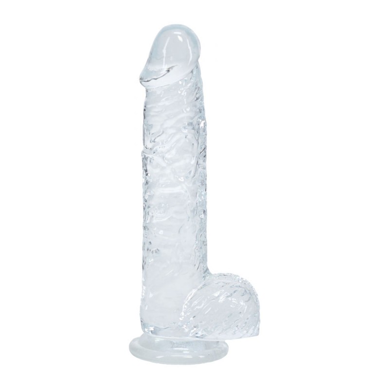 This REALROCK CRYSTAL CLEAR small dildo model has been designed with realistic balls for an enhanced lifelike experience. All come with a sturdy suction cup so you can stick it to practically any smooth surface. All are body-safe and non-porous which makes them easy-to-clean and gives them a longer lasting durability.