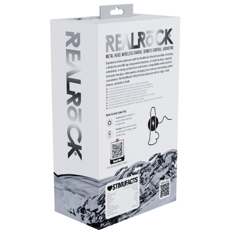 Experience intense pleasure with the RealRock® Metal Head dildo. This lifelike vibrating dildo features a solid metal tip, powerful vibrations, for deep targeted stimulation. Built for hands-free action with a strong suction base and harness compatibility. With wireless charging and remote control, the RealRock® Metal Head brings the heat—perfect for anyone who likes their pleasure hard, and heavy.