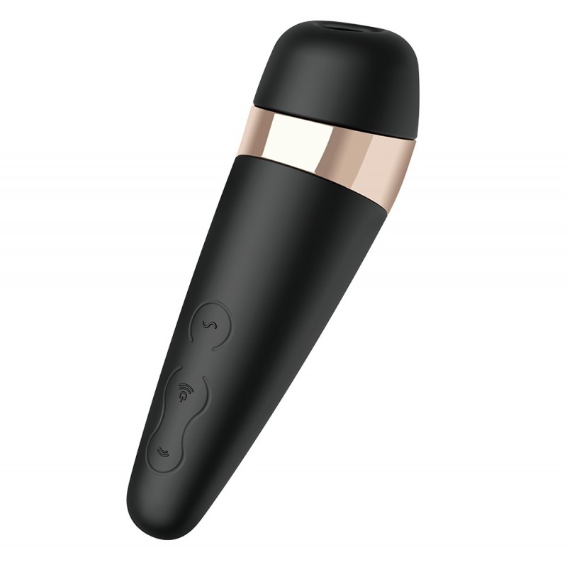 The new Satisfyer Pro 3 Vibration will make all your dreams of desire come true: Successor to the Satisfyer pressure-wave vibrators popular around the world, the Satisfyer Pro 3 Vibration offers a new design and additional vibration function. This clit vibrator combines intensive, non-contact pressure-wave clitoral stimulation with a sensually vibrating lay-on head: In the inner area, the silky smooth silicone ring changes rapidly between suction and pressure pulses in 11 intensity settings, creating the explosive feeling of oral sex. Meanwhile the edge of the ring around your clitoris massages you with 10 different, tingling vibration settings. The two functions can be controlled separately, meaning that there is a total of 110 combination options for you to discover. Regardless of the option you choose, unforgettable orgasms are guaranteed, especially thanks to the ultra-soft head which nestles very gently around your love bead.The head, made from skin-friendly silicone, has also been optimised. It is now bigger and wider so that it can surround your clitoris even more effectively, allowing you to forget the world while it provides you with stimulation ranging from tender to intense in 11 exciting steps.