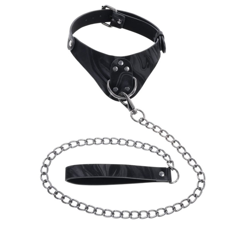 Step into the world of refined restraint with the Velvet Noir Collar & Leash. Crafted to blend elegance with functionality, this BDSM collar surrounds the neck in a luxurious, marbled material that’s as captivating as it is comfortable. The dark, intricate pattern adds an aura of sophistication, transforming a classic restraint into a piece of art. Whether you’re exploring new levels of trust or simply enhancing your intimate collection, the Velvet Noir Collar delivers an experience that commands attention.