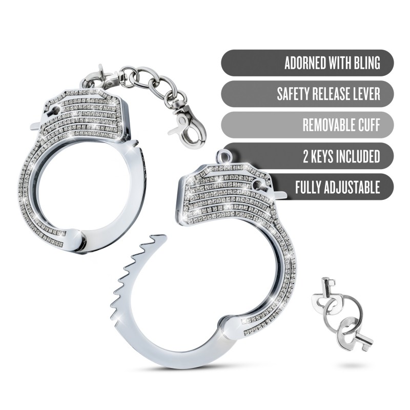 How about the night that you arrest him and tell your lover to spread their legs while you playfully and seductively, lock up your lover with these sexy cuffs that are luxuriously adorned with crystals. You can adjust each stainless steel cuff to fit a wrist from 5.5 inches to 8 inches to ensure a comfortable fit and experience for the wearer. With locks on both cuffs, each containing a safety release lever and a set of two working keys, these sexy cuffs are a great way to add fun to your bedroom or just any play time, spice it up! You can also separate each cuff with the built-in lobster claw clasp for even safer play. The matching keys work for both locks, so give one to your lover and tuck another in your jewelry box for safekeeping. Enjoy these role play nights! You can go back to having the right to remain silent about them after and you and your lover enjoy your naughty secret!