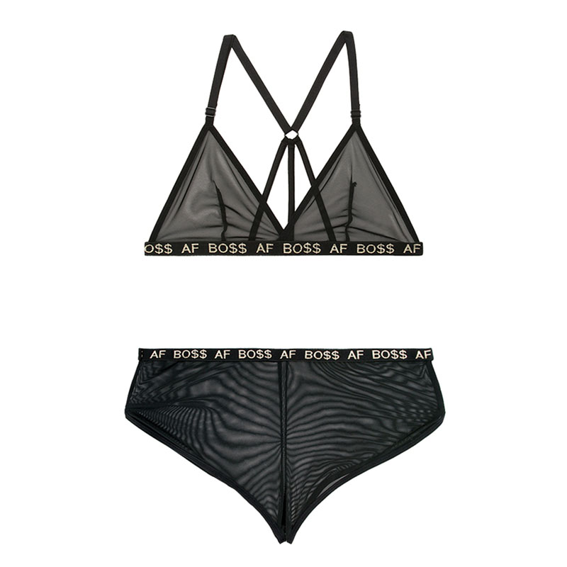 Mesh Bralette with "Boss AF" Straps and Matching Retro Short